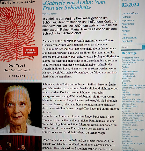 Die Rezension des Buches "Der Trost der Schönheit", Rowohlt Verlag 2023, von Gabriele von Arnim, ist erschienen in Literatur & Kunst Nr. 101, 03/2024, www.literaturundkunst.net
